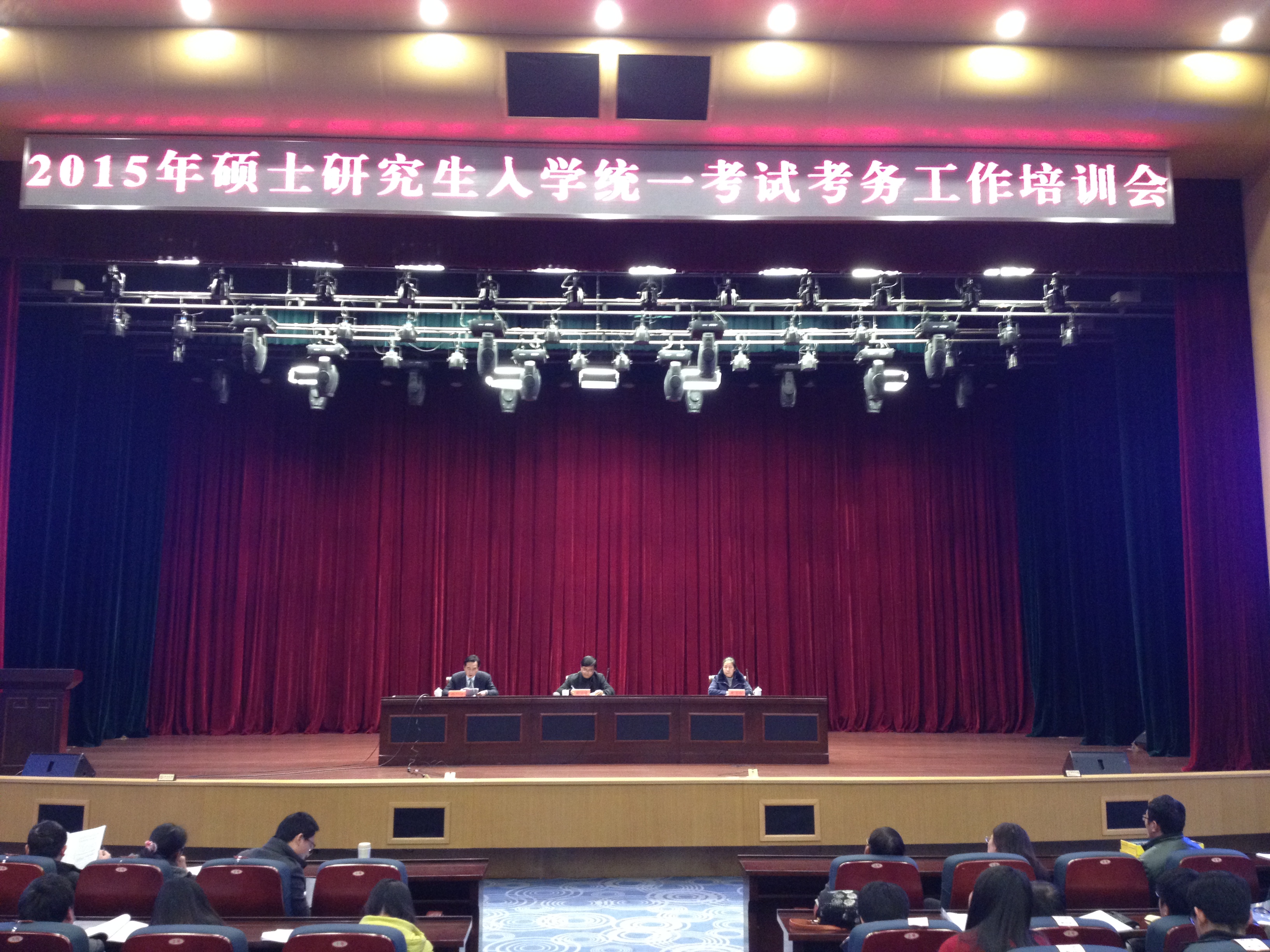 考前,考点领导小组专门召集市公安局、无线电管理处、学工处、保卫处、后勤处、后勤集团、信息化中心、职工医院等相关部门召开协调会,对考试组织工作等各项任务进行了部署,形成了职责明确、协调高效、快速反应的考试工作机制。12月25日,按照省教育考试院统一要求,我校报考点在小礼堂召开了2015年硕士研究生入学考试考务工作培训会,并与考点全体工作人员签订了安全责任状。