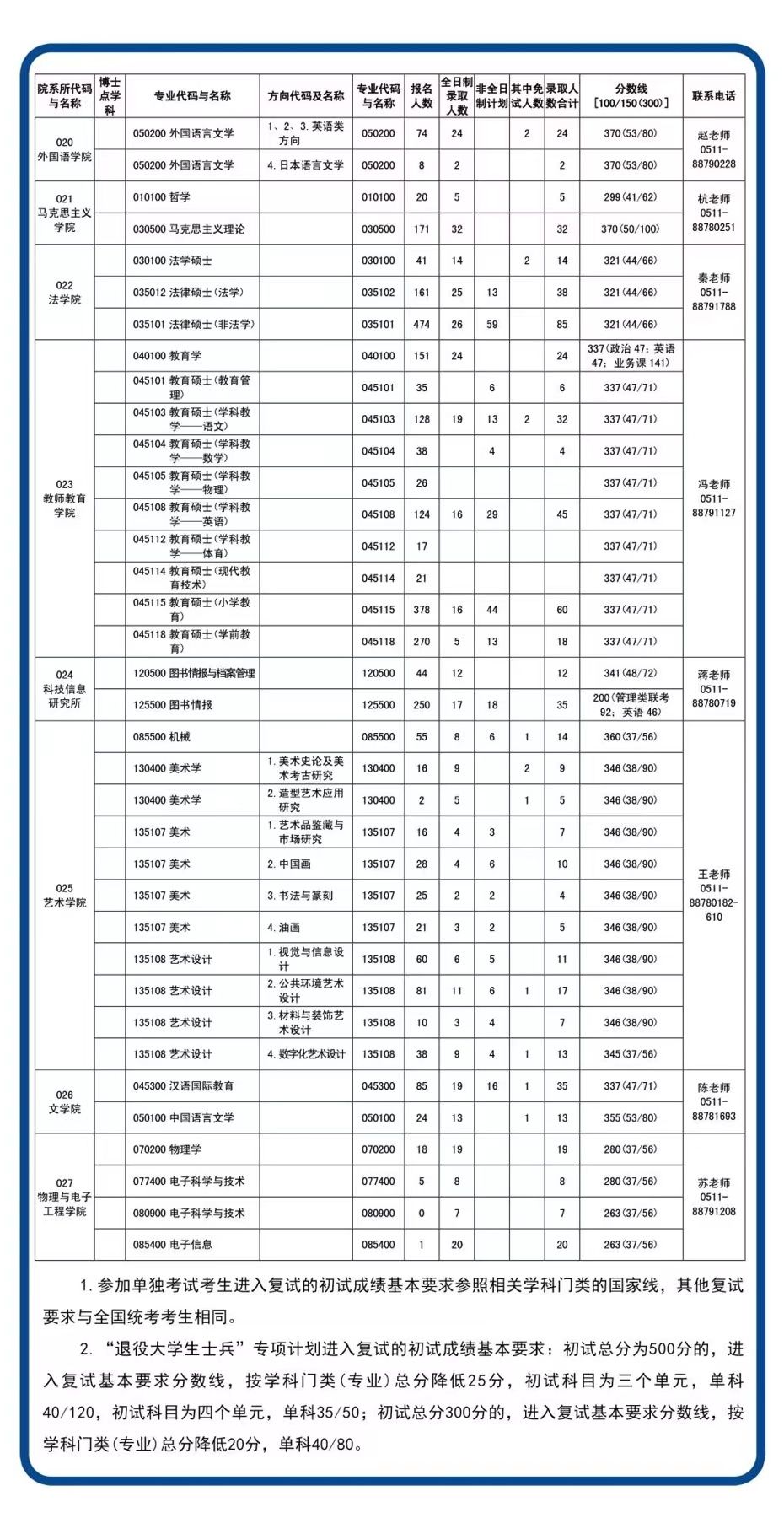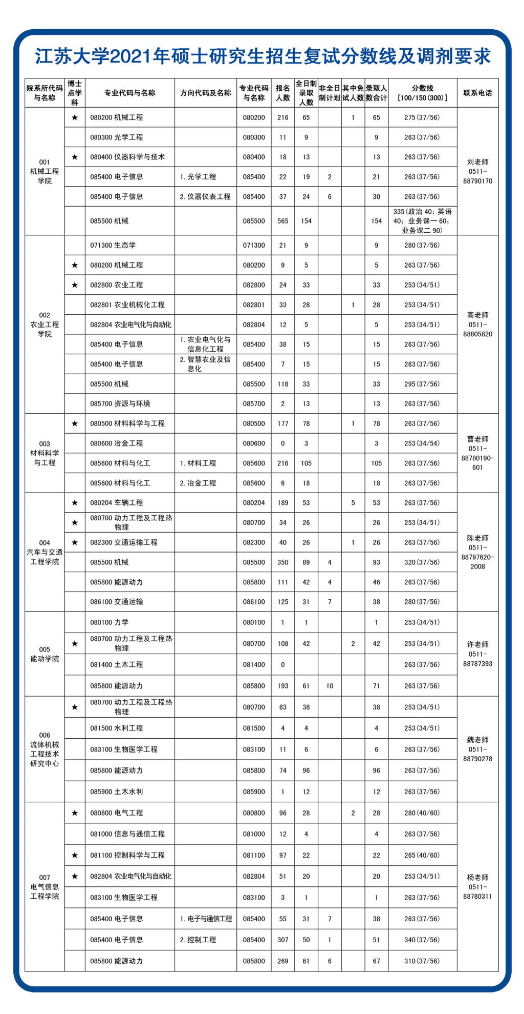 江苏大学2021年硕士研究生复试分数线及报考录取情况表